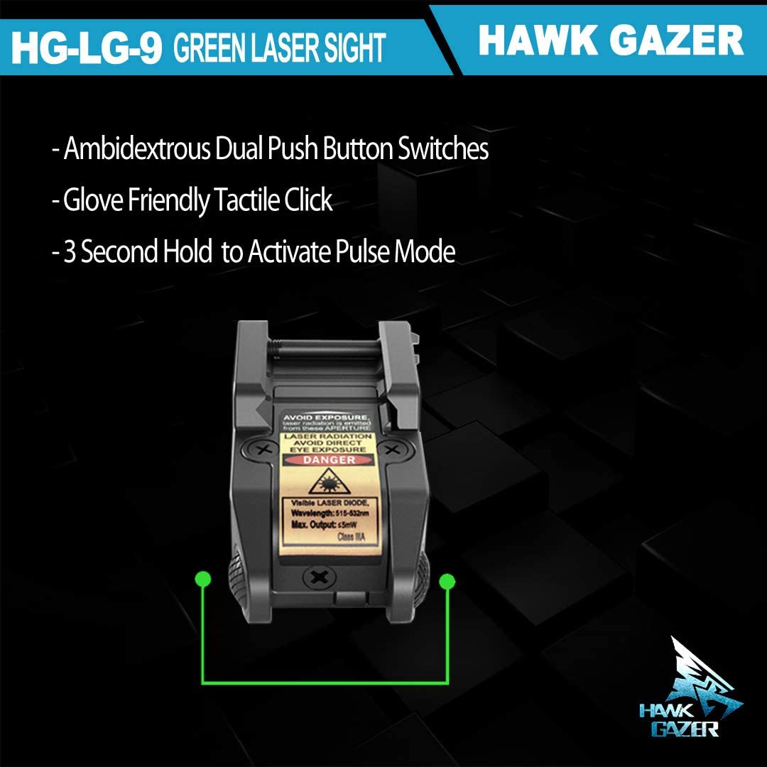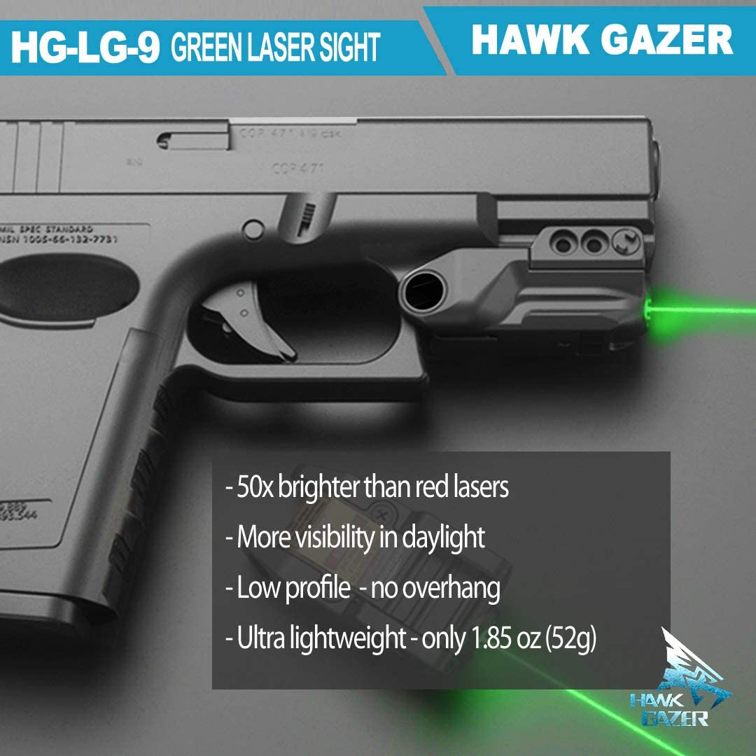 HAWK GAZER LG9 Low Profile Rechargeable Green Laser Sight, for Handgun, Pistol, Rifle with Rails