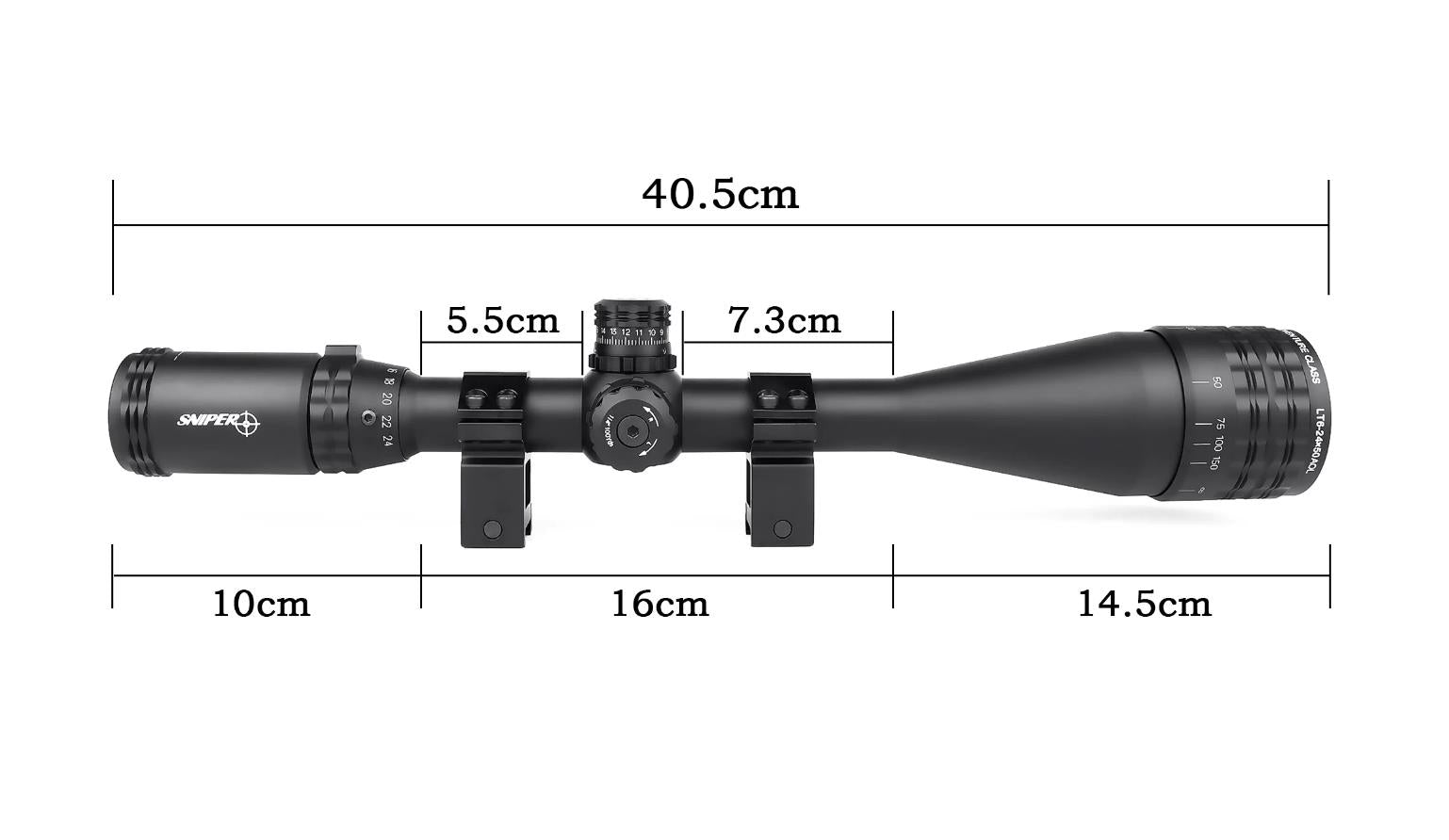 Sniper LT 6-24x50AOL Scope W Front AO Adjustment. Red/Blue/Green mil-dot Reticle
